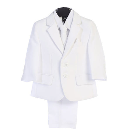For sale is a brand new, formal boys suit. This elegant white suit comes as a 5-piece set, complete with a garment bag for protection and storage. It's the perfect choice for special occasions such as First Communions. The suit is in pristine, new condition.
