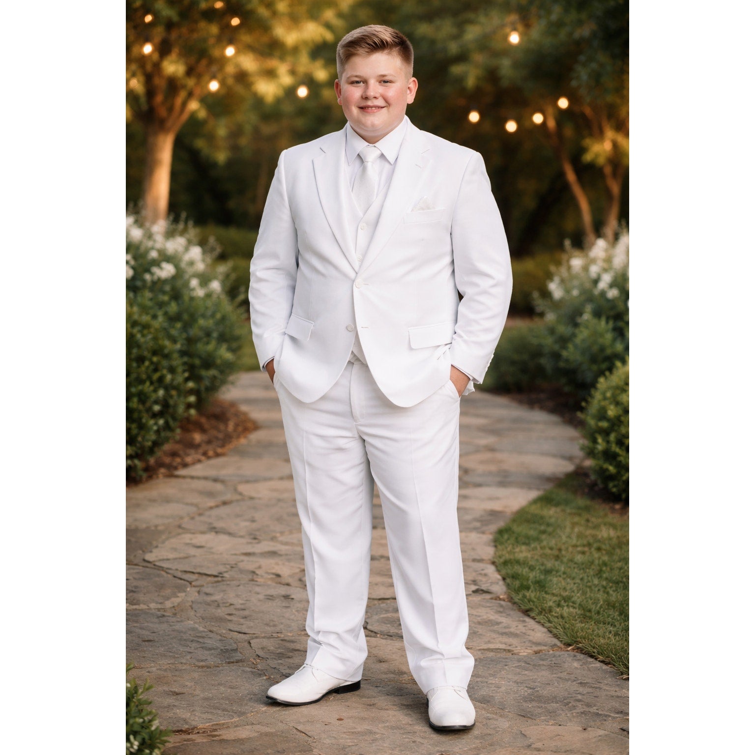 NEW Boys First Holy Communion Suit - White 5 Piece w/Garment Bag - Size 8H