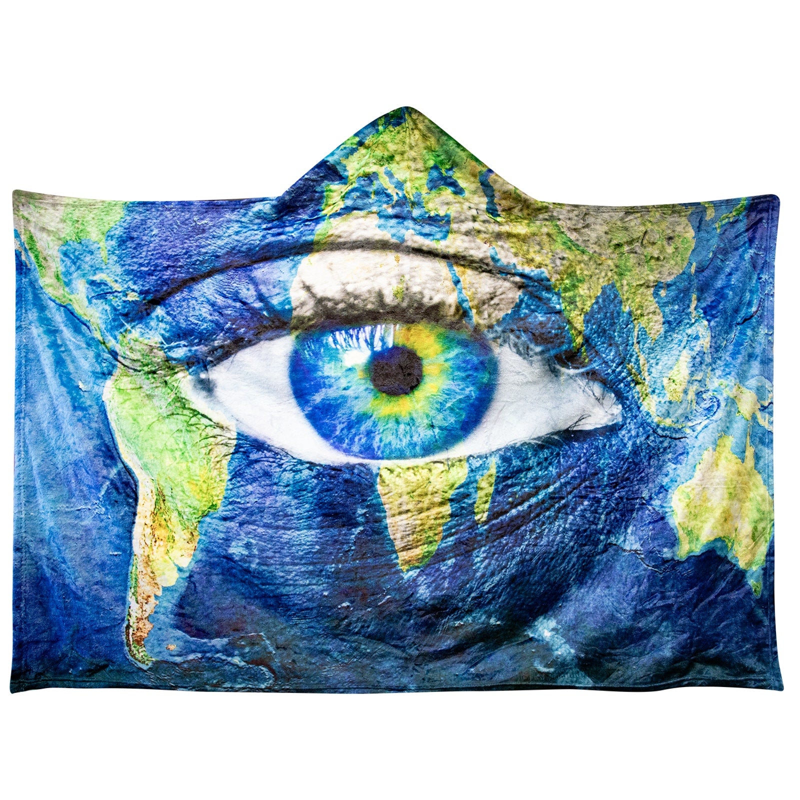 NEW Hooded Blanket - Planet Earth and Blue Eye Painted World Wearable 50" x 60"